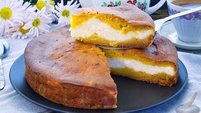 Нежный, как тортик. ЗАЛИВНОЙ ТЫКВЕННЫЙ ПИРОГ С ТВОРОЖНОЙ НАЧИНКОЙ