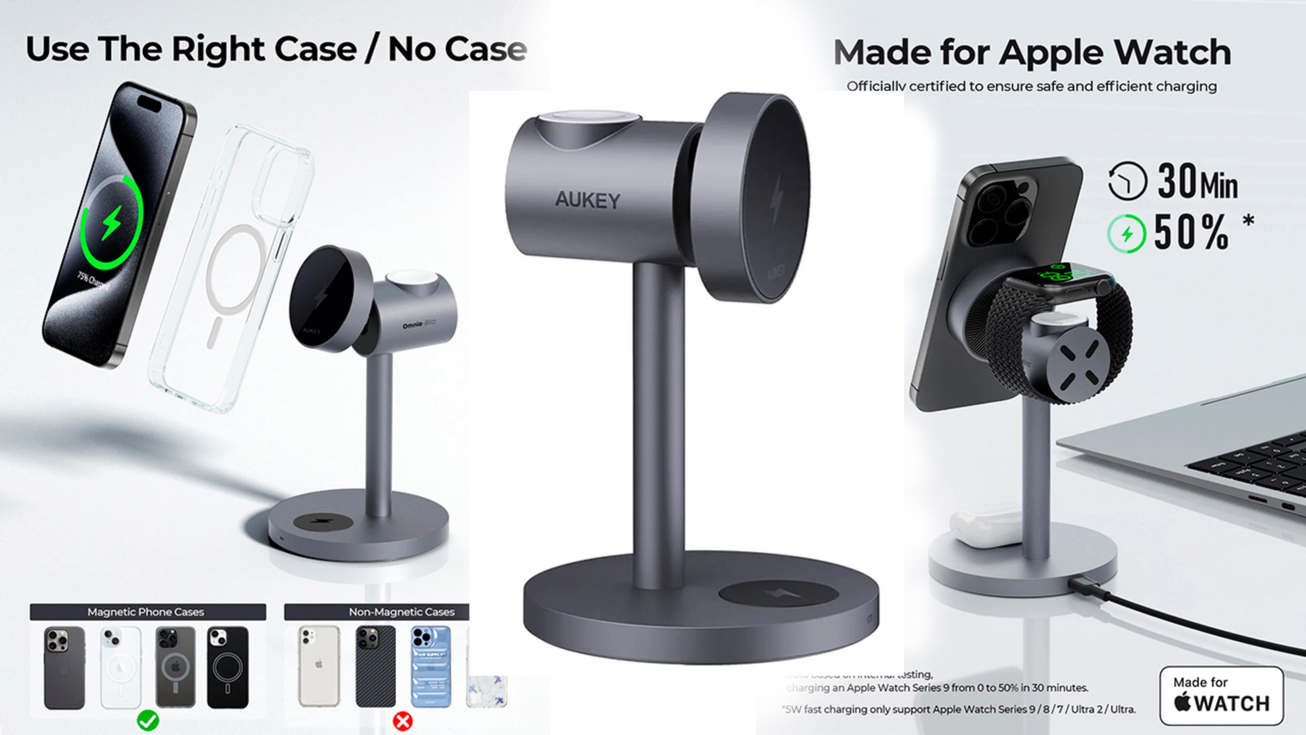 Беспроводное зарядное устройство Aukey, MagFusion Qi2 3 в 1 (LC-MC311)