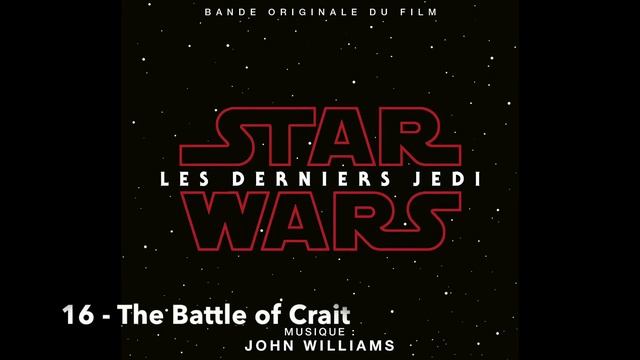 Music composed and conducted by JOHN WILLIAMS. The Supremacy – 3 : 05 Old Friends – 0 : 00 – 3 : 55 Lesson One – 0 : 45 The Sacred Jedi Texts – 0 : 00 – 1 : 00 – 2 : 05 A New Alliance – 1 : 15 The Battle of Crait – 0 : 00 The Spark – 0 : 45 Peace and Purpose – 0 : 15 – 2 : 35 The Last Jedi – 0 : 30 Finale – 0 : 35