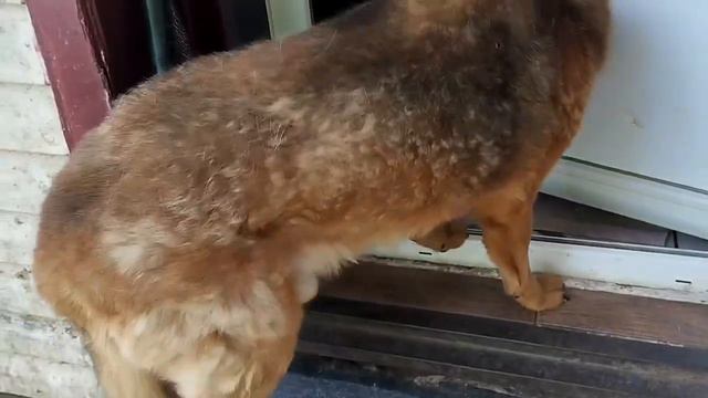Рыжик пришел обратно к дому