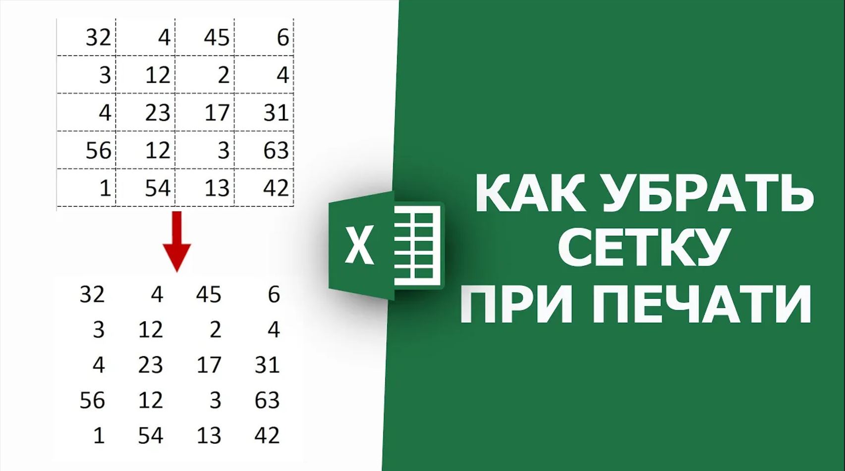 Как убрать сетку при печати в Excel