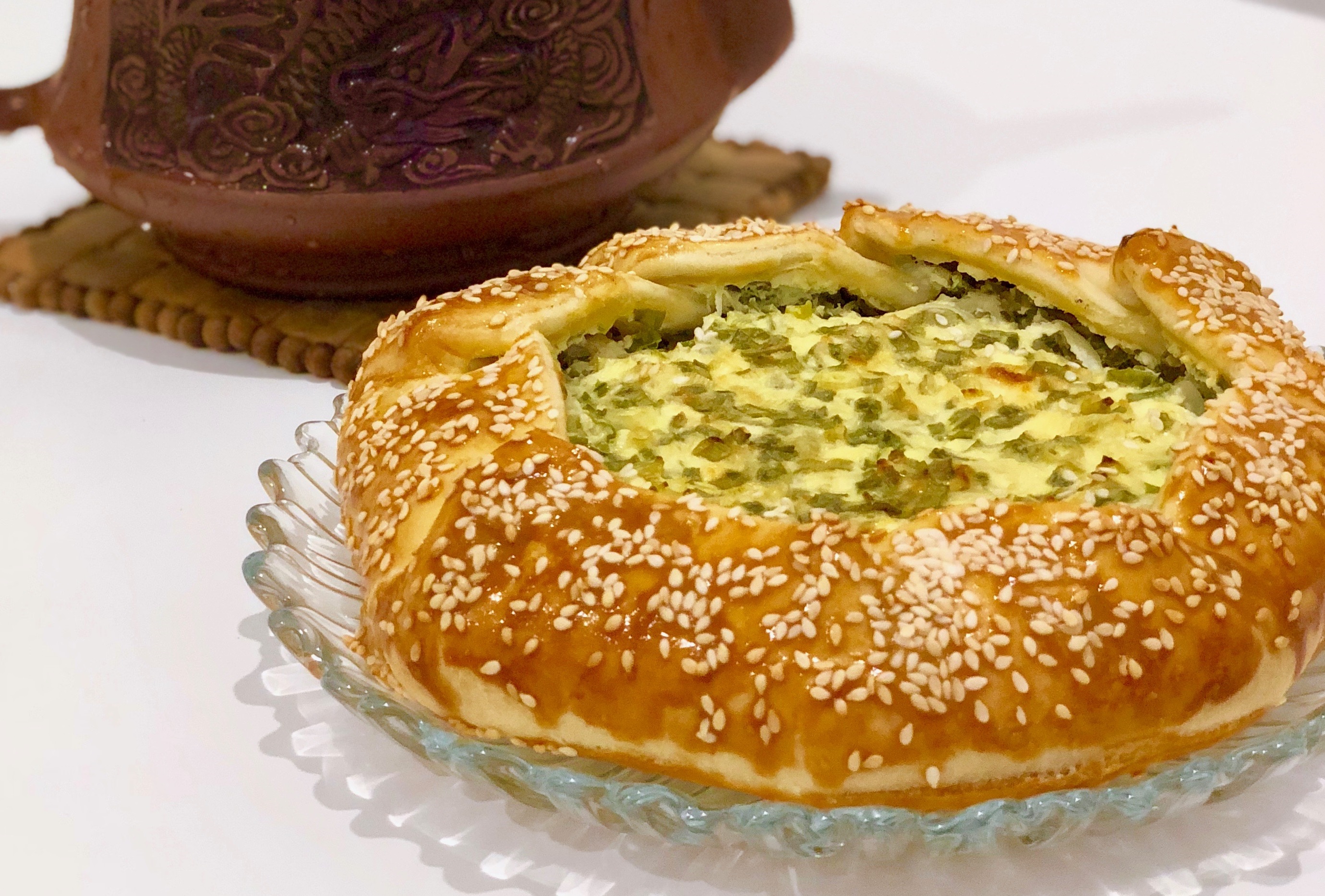 Галета с творогом и зелёным луком ??? Моя первая галета и это любовь на веки ? Быстро, вкусно, можно делать с любой начинкой ???✅ Ингредиенты: Тесто﹥ Мука - 200 гр Масло сливочное - 100 гр Вода - 5 ст/л Начинка﹥ Творог - 300 гр Лук зелёный - 100-150 гр Яйцо - 1 шт Соль - по вкусу Для украшения ﹥ Желток - 1 шт Кунжут - 1 ч/л Приготовление: В блендере соединяем муку и холодное сливочное масло, измельчаем в крошку. Добавляем ледяную воду и собираем, скатываем тесто в шар. Убираем в холодильник ~ 20 минут. Зелёный лук моем, мелко режем. Соединяем лук, творог, соль, яйцо. Хорошо перемешиваем начинку. Раскатываем тесто в круг толщиной ~ 4 мм. Обрезаем по тарелке аккуратную форму круга (можно не обрезать). В центр выкладываем начинку и загибаем края теста к центру внахлест. Смазываем желтком и украшаем кунжутом. Выпекаем в разогретой духовке при t-200 градусов до золотистого цвета и умопомрачительного запаха ~30-35 мин ? Из обрезков теста у меня получилась ещё одна маленькая галета, на 2 порции. Приятного аппетита ? #Asti_рецепт