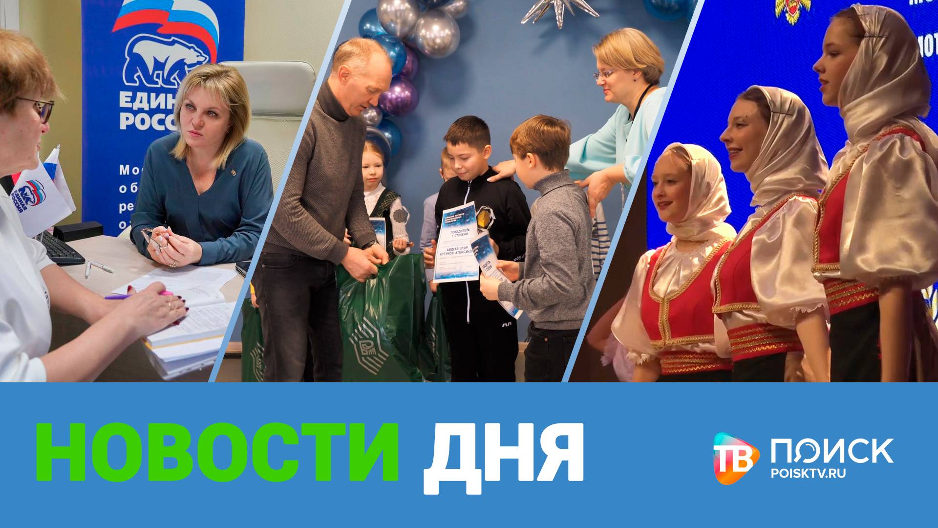 * Гордость и достояние предприятия. На предприятии "Химлаборприбор" заработала новая печь. Старейший завод Клина в условиях санкций уверенно набирает обороты, а для удовлетворения всех поступающих заказов набирает сотрудников. * Подготовка к новому году и уборка снега. Округ входит в зиму. Убирать дороги и общественные пространства необходимо своевременно. Коммунальные службы также должны вовремя вывозить снег. * Таланты и поклонники. В клубе "Спутник" поселка Новощапово прошел смотр зонального этапа областного детско-юношеского конкурса "Таланты и поклонники". Клин встретил гостей из 11 округов Московской области. * 5 декабря отметим День волонтера. В России с начала 2000-х годов создаются многочисленные общественные организации и инициативы, направленные на помощь нуждающимся. Об их самоотверженности снимают фильмы, пишут стихи и песни. Об этом и не только в программе "Новости дня"