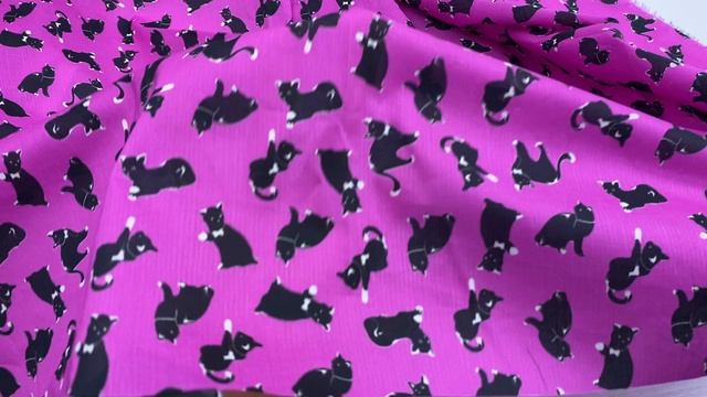 Батист цвета фуксия с принтом чёрные коты 14014