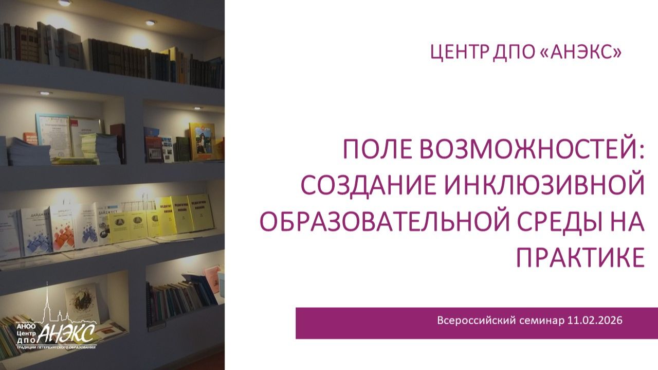 Этот семинар для вас, если вы хотите: • Говорить об инклюзии не на языке лозунгов, а на языке конкретных методик и приемов. • Научиться гибко адаптировать пространство класса, задания и стиль общения под разнообразие детских потребностей. • Увидеть в «сложном» поведении не вызов, а сигнал о нехватке навыка или неудобной среде – и знать, как на него отвечать. • Получить работающие алгоритмы, которые снижают стресс педагога и повышают успешность всех учеников. • Обменяться опытом с коллегами и создать личный план позитивных изменений. Ведущие: Борзенкова Мария Дмитриевна, методист Центра ДПО "АНЭКС" по учебно-методической работе Секции: - Создание атмосферы эмоциональной безопасности для каждого ребенка в группе сверстников - Ресурсный педагог для особого ребенка: стратегии успеха Что вас ждет: Цель: ликвидация профессиональных дефицитов педагогов к реализации инклюзивных принципов через освоение и проектирование конкретных практических инструментов для адаптации образовательного пространства, контента и взаимодействия с учетом разнообразия образовательных потребностей детей. Вопросы для обсуждения: Три кита инклюзивной среды: Пространство, Контент, Коммуникация. Практические приемы зонирования, сенсорной разгрузки, организации рабочих мест для детей с разными особенностями (двигательными, сенсорными, РАС). Технологии взаимодействия в учебной группе: ребенок-взрослый; ребенок-ребенок; педагог родитель.