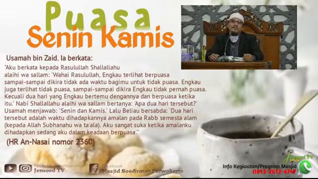 Kajian Rutin Masjid Sudirman Purwokerto. Jadwal kajian Masjid Jensoed ba'da maghrib | Senin Ust Juman abu Ahmad.Lc tema Tauhid | Selasa Ust Fakhruddin tema Fiqih Muamalah | Rabu Ust Syaifuddin Zuhri.Lc Tema Al-Mulakhos Al-Fiqhi | Kamis Ust Agus Tardian.S.Pd.I tema sunah yg sering di tinggalkan | Jum'at Ust Abdullah Zaen.Lc.MA tema Adab dan Ahlak | Sabtu Ust Heru Widodo.Lc.M.Pd.I tema Tematik | Ahad Ust Naser Balfas.Lc.M.H.I tema Al Ya'oum Al Akhir | Kajian AHAD pagi ba'da subuh bersama Ust Cholid Basalamah.MSI tafsir Al Quran | Kajian Ba’da Ashar Bersama Ustadz Ja’far Ashidiq Tema: Adab Menuntut Ilmu | Kajian Kamis Sore Bersama Ustadz Zakaria Ahmad |Kajian Sabtu Ba’da Ashar Bersama Ust Muhammad Faizar Tema : Ruqyah Sariyyah | Kajian Khusus Muslimah Senin pagi pekan 1 dan 3 bersama Ust Arif Hidayatullah | Pekan 2 bersama ust Ali bin Abdul Azis.Lc | Pekan 4 bersama Ust Nur Hamdan.Lc | Selasa jam 16.00 sampai jam 17.00 bersama Ust Ali bin abdul Aziz | Rabu jam 09.00 sampai 10.30 bersama ustadah Estifa | Kamis jam 09.00 sampai jam 10.30 bersama Ust Juman abu Ahmad.Lc Program Masjid | Buka Puasa Sunah Seni dan Kamis | Potong Rambut Gratis Setiap Jum'at jam 07;30 - 10;00 | Cek Kesehatan dan Pengobatan Gratis setiap Ahad ke 3 | Pembagian Beras Setiap Ahad 1 | Umroh Gratis Setiap Tahun | Khitanan Masal Setiap Tahun | Donasi 541.007.4948 atas Nama Yusuf konfirmasi Donasi WA ( 081326124747 ) | Jangan lupa SUBCRIBE Youtube Jensoed TV