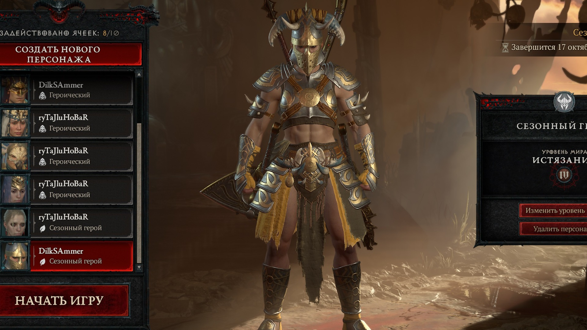 Diablo 4 - сезон чумы - минимальная сложность - играю за воина 74-75 лвл