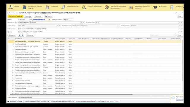 Учет успеваемости в университете Лесгафта в 1С Университет ПРОФ