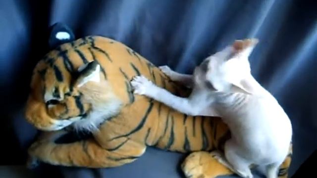 Белый, голубоглазый кот донского сфинкса.