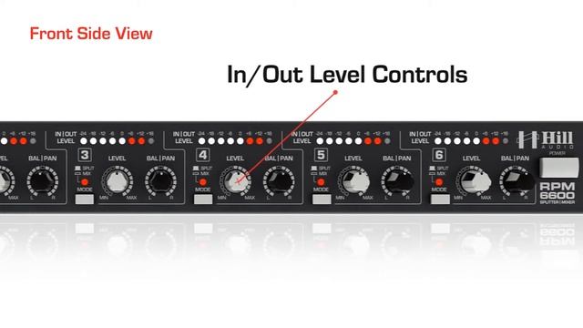 The RPM-6600 is a versatile combination of a 6-in-2 mixer and a 2-in-6 splitter, while it also provides a handy way of adjusting levels or impedances by acting as a buffered level translator from -10 dBV to +4 dBu or vice versa. It offers 6 identical input/output sections with level control, panpot/balance control and 8-LED level meter each. Every section can be configured with a switch to either work as an input for a mix available at the master output, or as a splitter output from a master signal fed to the master input. In a mixer application, the main input section can be used as two additional inputs which makes the unit effectively sporting up to 8 inputs in mixer configuration. The versatility of this unit spans applications from sub-mixing of keyboards in a stage sound system to zone signal splitting in commercial sound systems. The broad range of applications also makes the RPM-6600 a useful problem solver in the vaults of any rental company. http://www.hill-audio.com/product/rpm-6600/