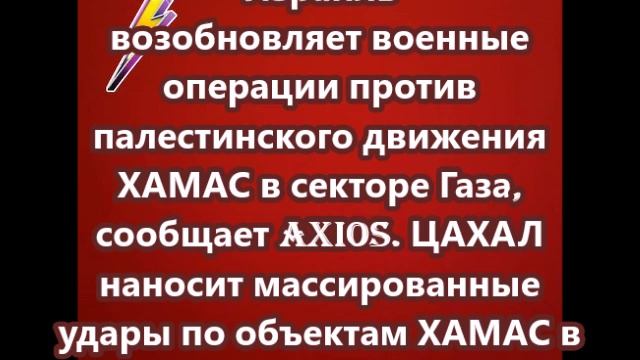 Израиль возобновляет военные операции против палестинского движения ХАМАС