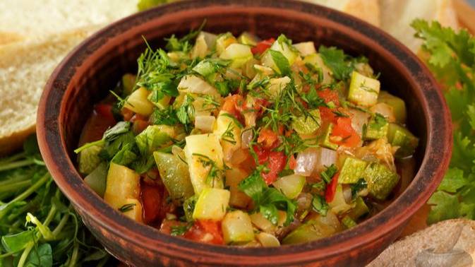 Простая, но удивительно вкусная и ароматная летняя закуска из доступных сезонных овощей - кабачков, помидоров, лука и чеснока. Все ингредиенты нарезаются кубиками и поэтапно обжариваются до мягкости. Подходит в качестве гарнира или холодной закуски. #ОвощноеРагу #Соте #ИкраИзКабачков