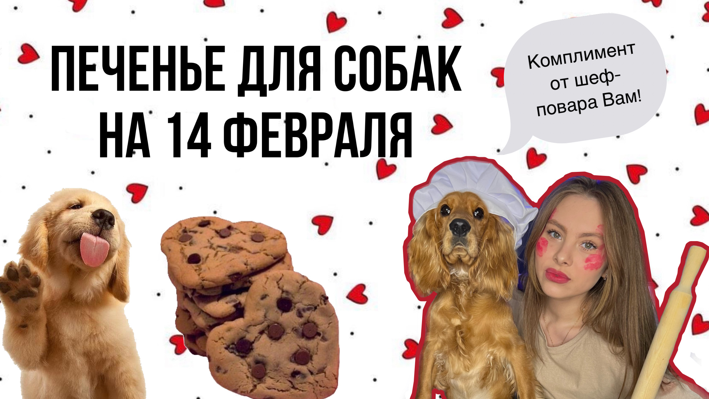 Привет! Помнишь какой сегодня день? День всех влюбленных. Но советую тебе не забывать и о своей главной пушистой половинке и приготовить для нее угощения-печенье! А если хочешь и целый торт! Оба рецепта ты можешь посмотреть в этом видео. Хочу сказать, что все ингредиенты подбираются индивидуально под каждую собаку и их легко можно заменить. А в конце этого видео подарок- небольшой туториал по моему макияжу на 14 февраля. Поэтому приятного просмотра, увидимся в следующем видео! #печеньедлясобак #тортдлясобак #рецепт