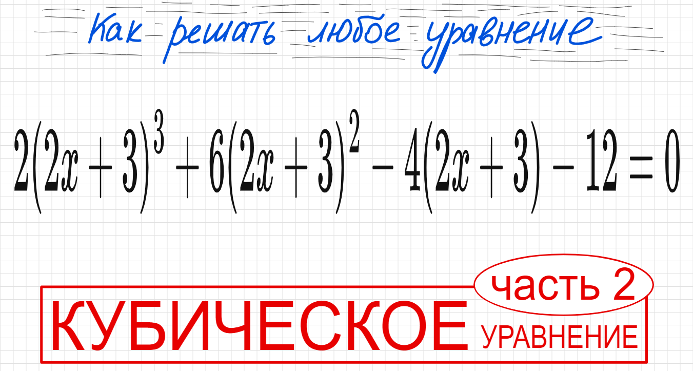 №5 Кубическое уравнение со скобками 2(2х+3)^3+6(2x+3)^2-4(2x+3)-12=0 Как сделать замену в уравнении