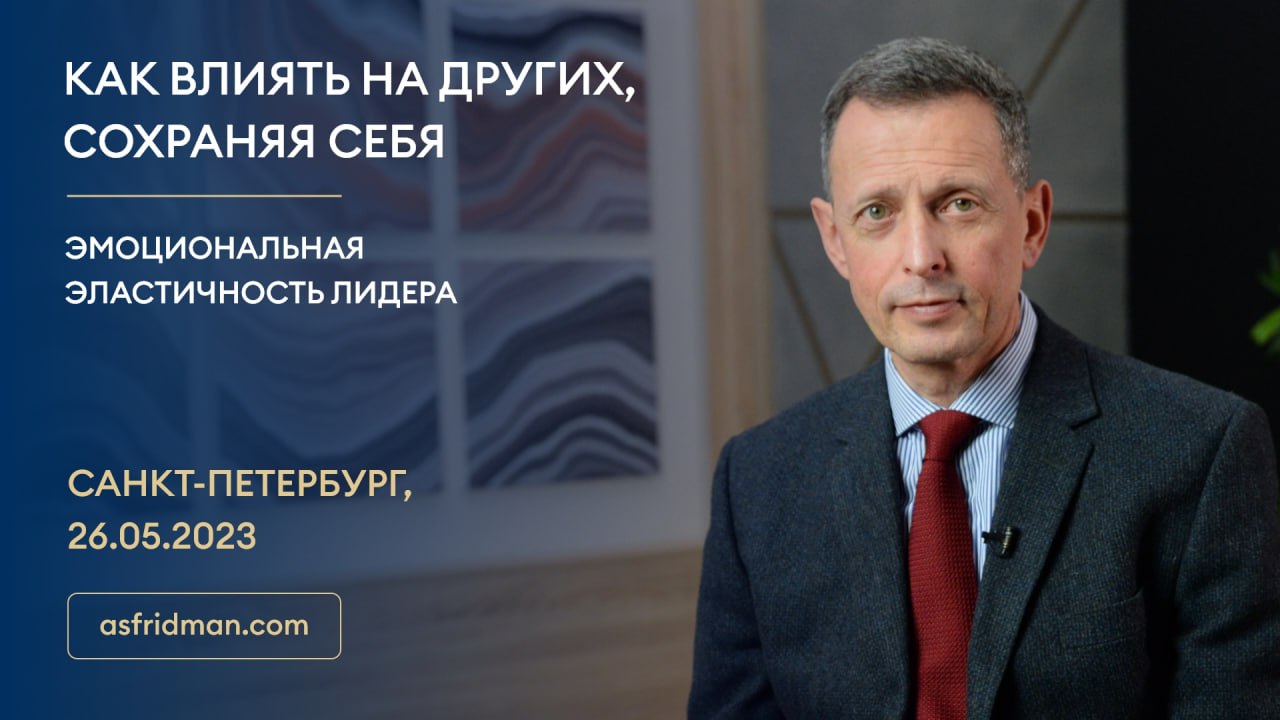 КАК ВЛИЯТЬ НА ДРУГИХ, СОХРАНЯЯ СЕБЯ: Эмоциональная эластичность лидера. Семинар Александра Фридмана в Санкт-Петербурге, 26 мая 2023 года. Подробности и регистрация: https://fridman-spb.ru/