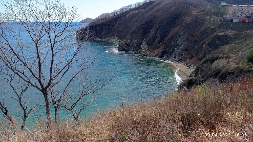 Вид от маяка на пляж и пирс