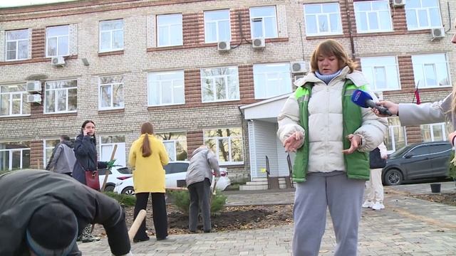 Учителя высадили деревья в Педагогическом сквере