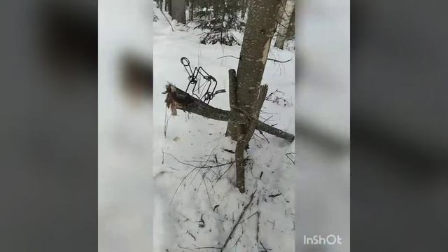 установка гуманного капкана на жердь . охота на соболя .