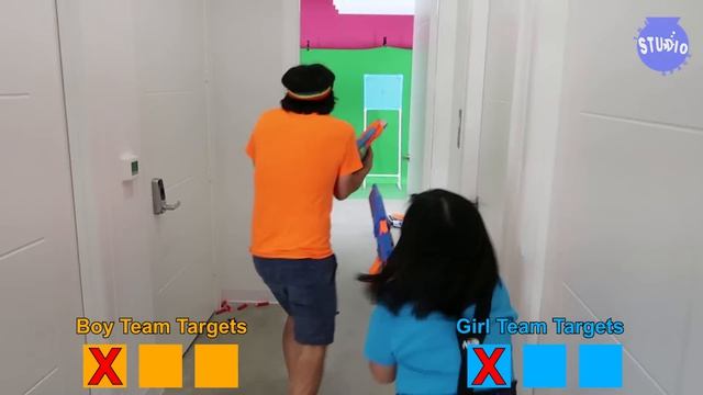 Box Fort Maze Ultimate Nerf Battle Challenge ! Boys Vs. Girls