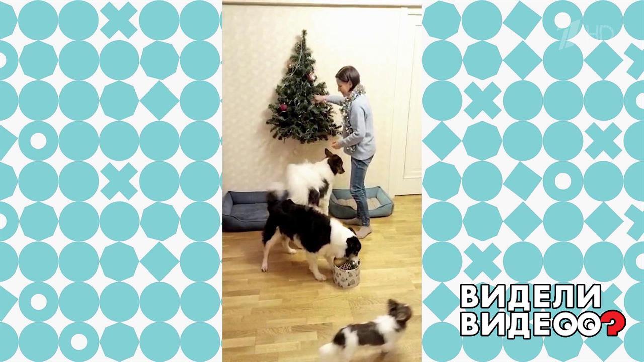 Собаки Линда и Марта помогают хозяйке наряжать елку.