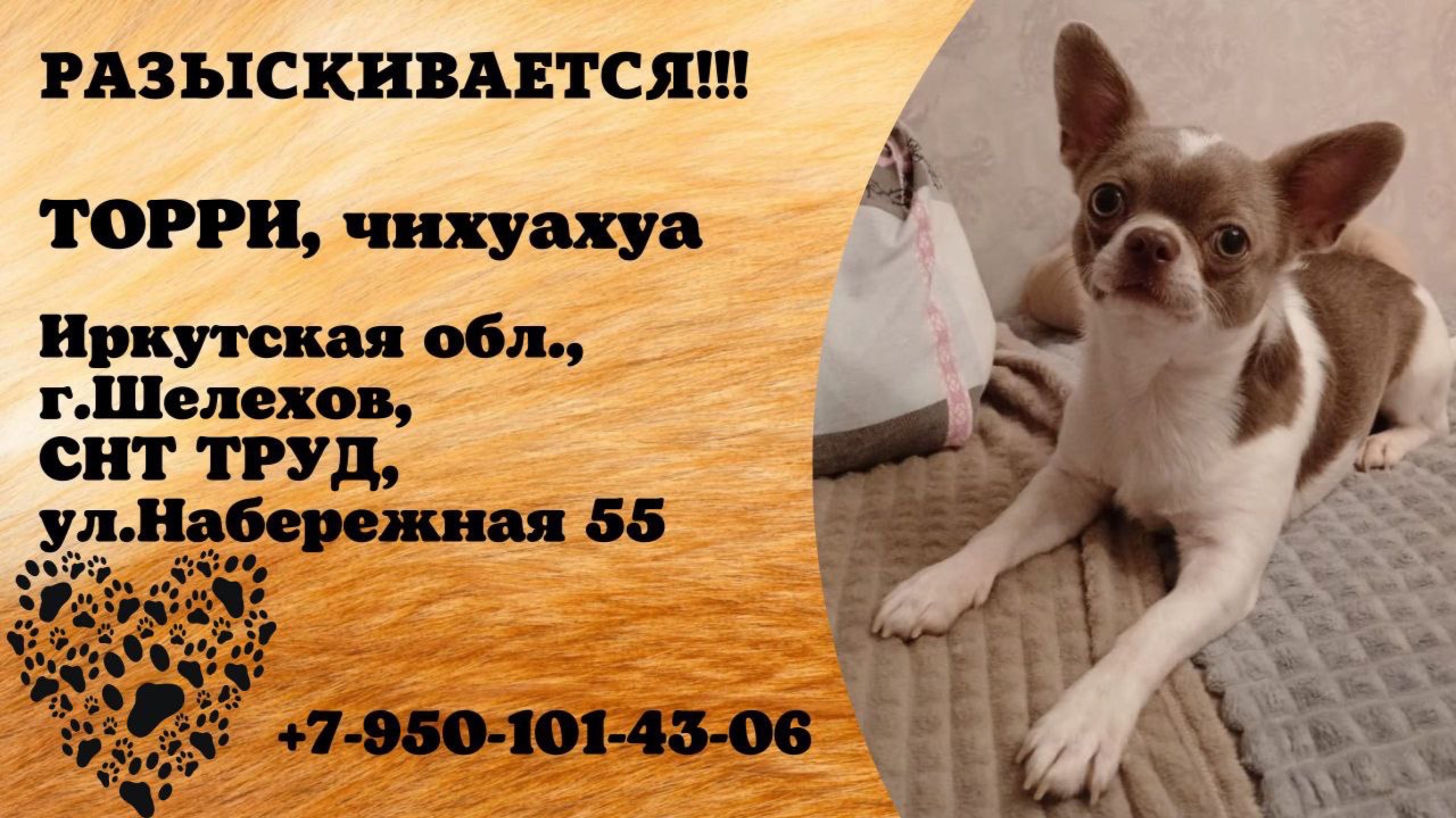 Пропала собака! ТОРРИ, чихуахуа. Иркутская обл., г.Шелехов.