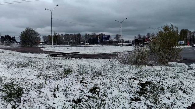 В Завидово выпал снег весной, аномальная погода для это региона.