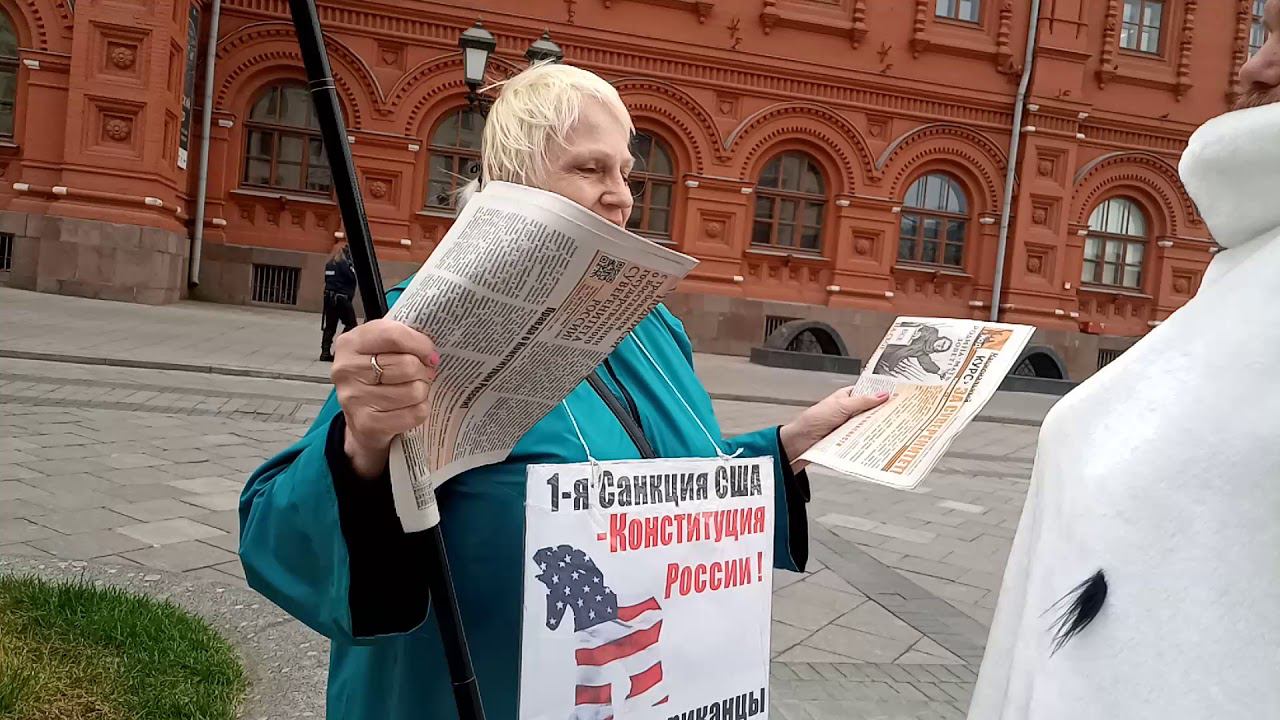 Москва. Пост № 1. Манежная Площадь. Одиночный информационный пикет участника Национально-Освободительного Движения (НОД). Ежедневно пикетчики Национально-Освободительного Движения рассказывают соотечественникам о правовой диверсии в нашей конституции о внешнем управлении государством и о идущем сборе решений (подписей) граждан с 1 марта за проведение всенародного референдума по изменению статей 9.2 ; 13.2 и 15.4 нашей конституции, что позволит вернуть нам суверенитет России, утерянный в 1991-93 гг.