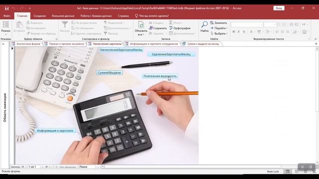 Автоматизированное рабочее место (АРМ) системы расчёта заработной платы. Курсовая работа. MS Access