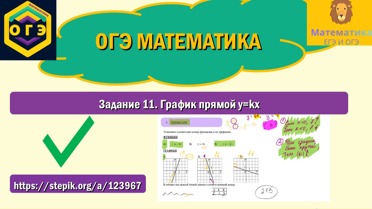 ОГЭ математика. Задание 11. График прямой y=kx.