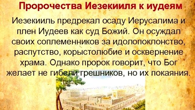 Дубль-сюжеты на Рутубе здесь - https://rutube.ru/channel/23868611/ ❗Тема Дня: "Пророчество о предстоящем вавилонском пленении для Израиля. Иезекииль 12 глава bible.by/syn/26/12/"❗ 📙...здесь полная версия https://vk.com/club219145809?w=wall-219145809_1436 📜1-3 И было ко мне слово Господне: сын человеческий! ты живёшь среди дома мятежного; у них есть глаза, чтобы видеть, а не видят; у них есть уши, чтобы слышать, а не слышат; потому что они — мятежный дом. Ты же, сын человеческий, изготовь себе нужное для переселения, и среди дня переселяйся перед глазами их, и переселяйся с места твоего в другое место перед глазами их; может быть, они уразумеют, хотя они — дом мятежный; ✅Господь ВСЕГДА предупреждает свой народ (а мы, покаявшиеся, так же являемся Его народом) о предстоящем суде. В мире мы получаем повестку,...здесь полная версия https://vk.com/club219145809?w=wall-219145809_1436 📜4-7 и вещи твои вынеси, как вещи, нужные при переселении, днём, перед глазами их, и сам выйди вечером перед глазами их, как выходят для переселения. Перед глазами их проломай себе отверстие в стене и вынеси через него. Перед глазами их возьми ношу на плечо, впотьмах вынеси её, лицо твоё закрой, чтобы не видеть земли; ибо Я поставил тебя знамением дому Израилеву. И сделал я, как повелено было мне; вещи мои, как вещи, нужные при переселении, вынес днём, а вечером проломал себе рукою отверстие в стене, впотьмах вынес ношу и поднял на плечо перед глазами их. ✅День - Вечер. В Израиле рано темнеет. Проломать стену = показатель, что дом этот уже не понадобится. Взваленная ноша перед глазами израильтян, выносится впотьмах, как символ внутренней темноты народа и тяжести жизни вне Божьего благословения. Закрытое лицо = глупец не желающий ни видеть ни слышать Истины. 📜8-14 И было ко мне слово Господне поутру: сын человеческий! не говорил ли тебе дом Израилев, дом мятежный: «что ты делаешь?» Скажи им: так говорит Господь Бог: это — предвещание для начальствующего в Иерусалиме и для всего дома Израилева, который находится там. Скажи: я знамение для вас; что делаю я, то будет с ними, — в переселение, в плен пойдут они. И начальствующий, который среди них, впотьмах поднимет ношу на плечо и выйдет. Стену проломают, чтобы отправить его через неё; он закроет лицо своё, так что не увидит глазами земли сей. И раскину на него сеть Мою, и будет пойман в тенёта Мои, и отведу его в Вавилон, в землю Халдейскую, но он не увидит её и там умрёт. А всех, которые вокруг него, споборников его и всё войско его развею по всем ветрам, и обнажу вслед их меч. И узнают, что Я — Господь, когда рассею их по народам и развею их по землям. ✅Господь Бог, Отец народа избранного спрашивает у пророка о том, что, глядя на все его действия, не вызвало ли это тревоги в их сердцах? И даёт точный текст, что ...здесь полная версия https://vk.com/club219145809?w=wall-219145809_1436 📜16 Но небольшое число их Я сохраню от меча, голода и язвы, чтобы они рассказали у народов, к которым пойдут, о всех своих мерзостях; и узнают, что Я — Господь. ✅Кто читает Библию знает, что Господь оставляет кого - то, кто мог бы всё в подробностях передать новому поколению, новым народам. 📜17-20 И было ко мне слово Господне: сын человеческий! хлеб твой ешь с трепетом, и воду твою пей с дрожанием и печалью. И скажи народу земли: так говорит Господь Бог о жителях Иерусалима, о земле Израилевой: они хлеб свой будут есть с печалью и воду свою будут пить в унынии, потому что земля е