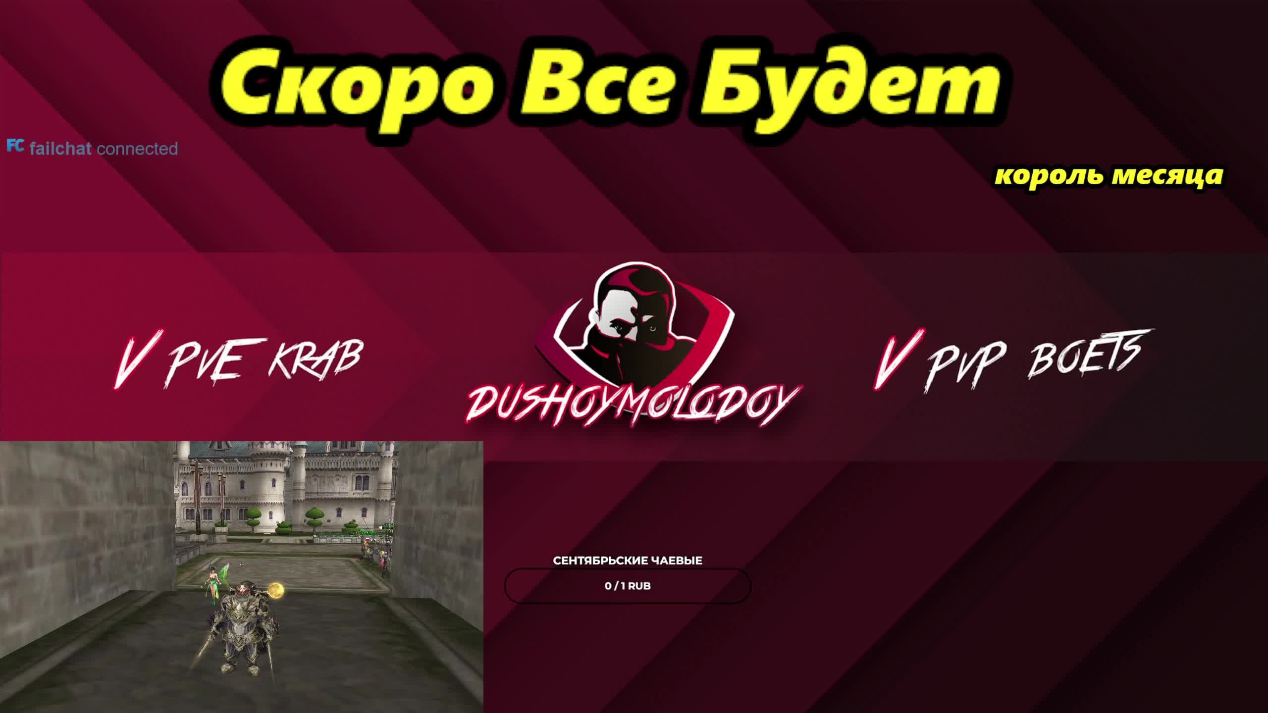 💪💪💪Ссылка на сервер с бонусами для новичков и вернувшихся игроков - https://ru.4game.com/s2s/dushoymolodoy_eva (версия Project Eva) https://4ga.me/essence_DushoyMolodoy (версия Essence) https://ru.4game.com/s2s/lineage2_dushoymolodoy (версия Main) https://ru.4game.com/s2s/legacy_dushoymolodoy (версия Legacy). От души благодарю! Получай подарки за предрегистрацию в новой ММО Grand Saga - https://4ga.me/3TdxaO0 Реклама. ООО «Иннова Дистрибьюшен», ОГРН 1077763692720 Erid: 2VtzqwJXVhv 📢📢📢 Ссылки на все мои социальные сети, где проходят анонсы роликов/стримов: https://t.me/dushoymolodoystream https://discord.gg/RDGqZya https://vk.com/dushoymolodoy Твич канал https://www.twitch.tv/dushoymolodoy Команды в чате: !ref, !tg На всякий случай: 📢📢📢Видеоролики уже дублируются сюда: https://zen.yandex.ru/id/622b53a99fefa169212eff8e 📢📢📢 Стримы будут тут: https://trovo.live/dushoymolodoy Не забывай оценивать видео лайком/дизлайком, это очень помогает в продвижении, а также подписываться на канал. 🌟🌟🌟Поддержать рублем https://www.donationalerts.com/r/dushoymolodoy Огромное спасибо за поддержку. Дай Бог Вам здоровья! 1. peaceducks_ - 21 011 rub 2. ErementarLightning - 15000 rub 3. Амири - 15000 rub 4. Юрий Иванов - 11850 rub 5. vitechek_tu_ru_ru - 10570 rub 6. Gandik - 6576 rub 7. Poggrimmon - 5230 rub 8. CyberHelper - 5000 rub 9. SecretCode - 3665 rub 10. Tangens (Дмитрий) - 3600 rub И всем остальным огромное спасибо за поддержку! Обновлено 04.09.22 #lineage2 #l2main #Lineage2Essence