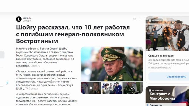Шойгу рассказал, что 10 лет работал с погибшим генерал-полковником Востротиным_ Новости - Google Chr