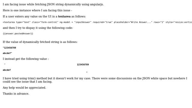 Salesforce: Remove leading and trailing white space from dynamic JSON in angularjs