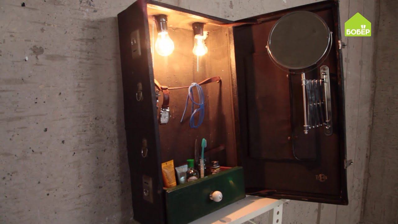 Как сделать шкафчик для бритья из чемодана | Дизайнерская мебель своими руками | Крутая переделка