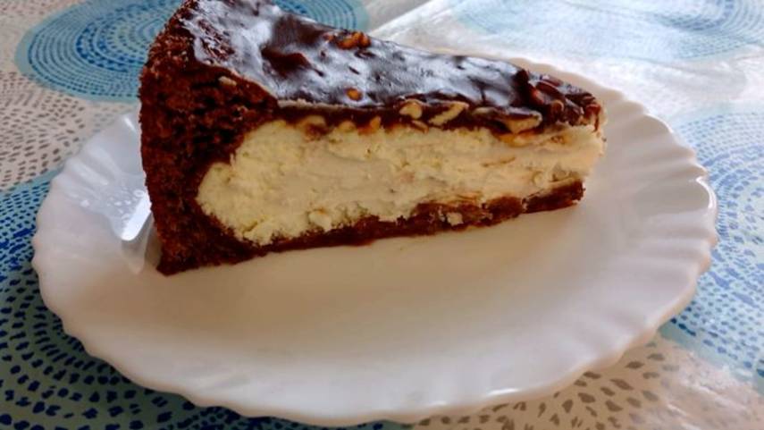Рецепт 180 гр муки 20 гр какао 100 гр сливочного масла 1 п разрыхлителя (10 гр ) 1 яйцо Замешать тесто убрать в холодильник на 30 минут. Крем : 500 гр творога 200 гр сахара 2 яйца 100 гр сметаны 3 ст л кукурузного крахмала Выпекаем 180 гр 40 минут Дать хорошо остыть ( в холодильнике) Полить сверху шоколадом. Добавить по желанию любые орешки Ганаш : 100 гр любого шоколада ( у меня молочный) 100 гр сливочного масла Шоколад пробить короткими импульсами в микроволновке. Вмешать сливочное масло. Всем приятного чаепития! Мой канал на рутуб http://www.youtube.com/@kavkaznadezhda Мой канал на дзен https://dzen.ry/id/649411b4d899574f0deac683