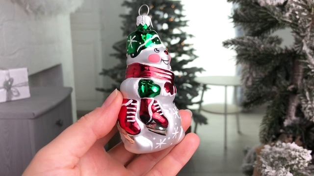 Елочная игрушка СНЕГОВИК С КОНЬКАМИ в красном шарфе, 80 мм, С1844-кр