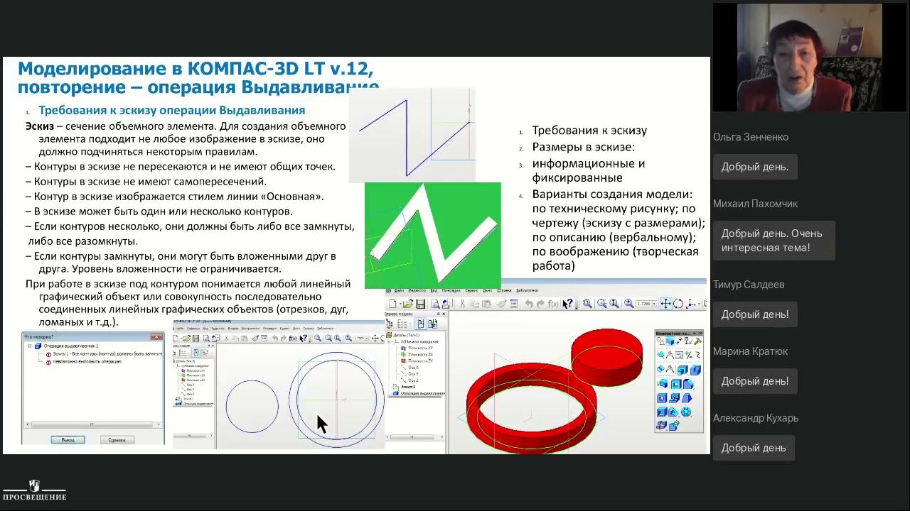 Спикер вебинара - Уханёва Вера Андреевна, кандидат технических наук, учитель-методист, преподаватель дополнительного образования, учитель высшей квалификационной категории по черчению, компьютерной графике и изобразительному искусству МБОУ «Гатчинская СОШ № 9», автор УМК 1. Моделирование в КОМПАС-3D LT v.12, сложные операции формообразования: Операция вращения, Кинематическая операция и Операция по сечениям. Массо-центровочные характеристики моделей. 2. Ассоциативные чертежи в КОМПАС-3D LT v.12: вставка, виды. Создание разрезов, сечений. Нанесение размеров и технических надписей. 3. Сборочные чертежи. ГОСТЫ на комплектующие, чтение и деталирование сборочных чертежей. Разработка проекта с использованием возможностей КОМПАС-3D LT v.12.
