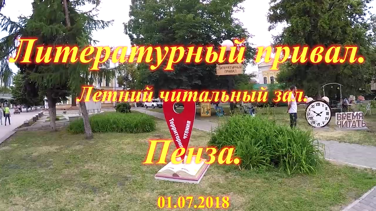 Пенза. Город. Литературный привал. Полковников ТВ. Альберт Полковников. «Литературный привал» - это многофункциональная площадка, где можно сфотографироваться с классиками, заняться интеллектуальными играми, провести несколько приятных часов с книгой на свежем воздухе. Источник - https://www.penzainform.ru/news/culture/2018/08/27/v_penze_proekt_literaturnij_prival_zavershil_sezon_2018_goda.html ОК - https://ok.ru/video/1775148141300 Сурский Край. Пенза - Пензенская область. (ОК) - https://ok.ru/video/1798709250804 YouTube - https://youtu.be/AXtm9JFyZnk