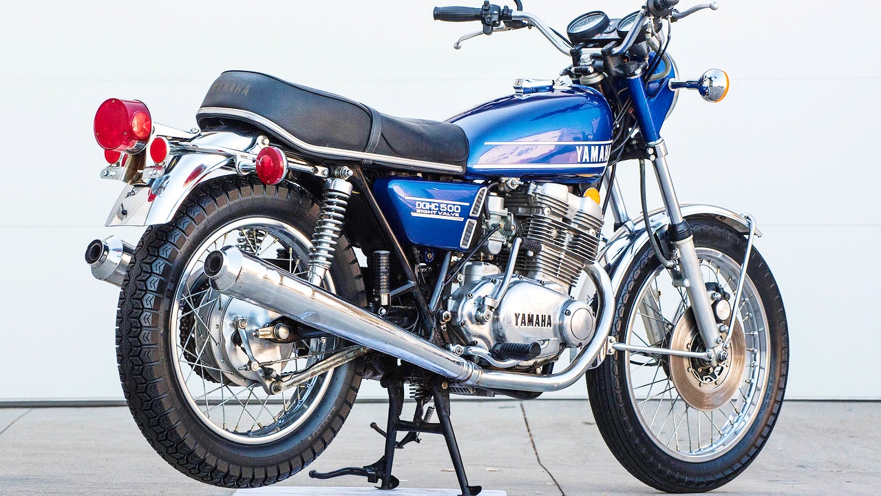 #YamahaTX500 #YamahaXS500 #JAWA В 1972г Ямаха представляет свою третью четырехтактную модель - Yamaha TX500.Продажи которой начались на большинстве рынков в 1973 году. Несмотря на то что TX500 был выпущен примерно в одно и то же время что и старшая модель TX750, между их двигателями существовали некоторые различия. TX500 приводился в действие параллельной двойкой воздушного охлаждения с мокрым картером,в отличие от TX750 с сухим . В трансмиссии использовались двойные верхние распредвалы (DOHC) и четыре клапана на цилиндр, которые приводились в действие коромыслами для каждой пары клапанов. Yamaha утверждала, что это был первый в мире серийный четырехклапанный мотоциклетный двигатель. 498 кубовая силовая установка выдавала достойные 48 л.с. максимальной мощности на 8500 тыс. об/мин.и 44 н.м. крутящего момента