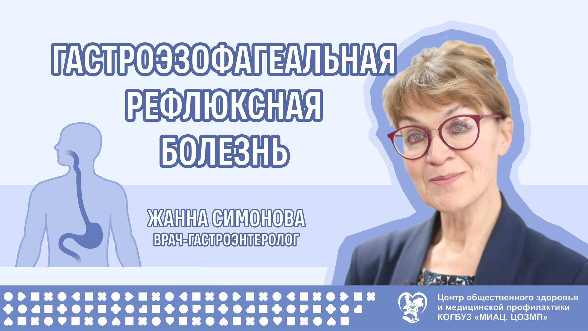 О гастроэзофагеальной рефлюксной болезни и ее профилактике рассказала главный внештатный специалист гастроэнтеролог министерства здравоохранения Кировской области, доктор медицинских наук, профессор, заведующий кафедрой госпитальной терапии ФГБОУ ВО «Кировский государственный медицинский университет» Симонова Жанна Георгиевна. prof.medkirov.ru