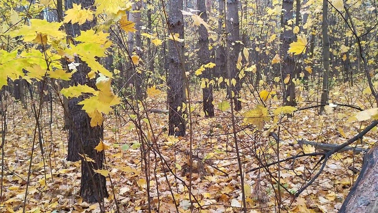 Белка под дождем прячет орехи. Листопад