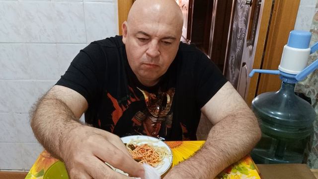 Мукбанг. Спагетти, баклажаны с мясом, помидоры черри. Кому война, а кому.....