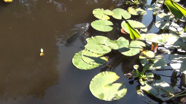 Ботанический сад. в бассейне лилии рыбы . черепахи....
