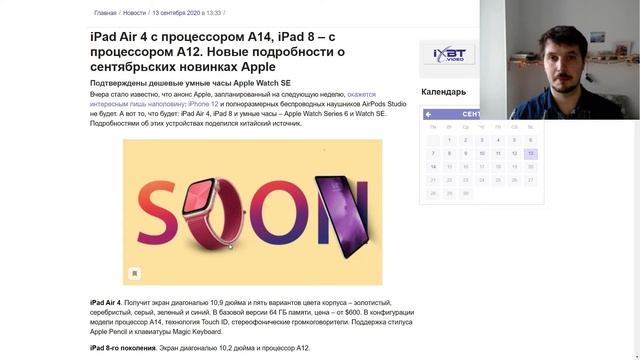 В сентябрьской презентации Apple не покажет iPhone 12.Зато покажет iPad Air 4 (ЦП A14), iPad 8(A12)