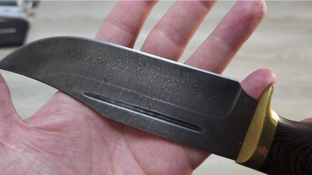 157. Заточка ножа из дамасской стали, для мяса. Двусторонние веневские алмазы.