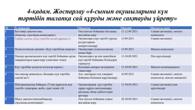 4- сынып оқушылардың күн тәртібін құруды және сақтауды үйрету