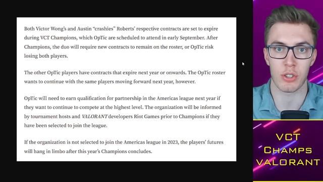 Follow me on Twitter: https://www.twitter.com/tacticalrab __________________________________________________________________ Join My Discord Server: https://discord.gg/kagp4yK Support the channel via Paypal: https://www.paypal.me/TacticalRab Support the channel via Amazon Affiliate Link: https://amzn.to/2CN4Fm5 My Recording Equipment: https://www.amazon.co.uk/shop/tactica... Looking to record or stream your gameplay? Choose Elgato: https://e.lga.to/BreakingPoint --- References: https://twitter.com/A_Marutake/status/1553295136464916480 https://twitter.com/fusionfsgg/status/1552383326878519297?s=21&t=Wih9wO4pyVgbtji-XLuxkA https://twitter.com/zeekrino/status/1553332286996860928?s=20&t=JoSe9novV0VRdsangcBGTw https://twitter.com/ValorLeaks/status/1553170142032453637 https://twitter.com/ValorantUpdated/status/1553425185990221827 https://twitter.com/GeorgeCGed/status/1553516466338762752 https://twitter.com/ValorLeaks/status/1553161671845232641 https://twitter.com/TenZOfficial/status/1553166537741180929 https://twitter.com/Zellsis/status/1553495645490757632 https://www.youtube.com/watch?v=1PkaqyVoPbY https://twitter.com/brandnchou/status/1553466571946967041 https://twitter.com/trentFPS/status/1553471905285505025 https://twitter.com/Zellsis/status/1553474154820763651 https://twitter.com/floxayyy/status/1553167253037776897?s=20&t=tdi8DQinB9AY3TbCNYoFBg https://twitter.com/texerino/status/1553456658000535554 Breaking Point: https://www.breakingpoint.gg Timestamps: 0:00 Alright guys 0:30 VCT Updates 3:15 OpTic Contracts 6:00 Sentinels x Chamber --- TacticalRab, VALORANT, valorant esports, valorant competitive, gameplay, montage, 100 thieves, 100t, 100thieves, Team Sentinels, TenZ, Asuna, SicK, Hiko, ShahZaM, Steel, FNS, dapr, mixwell, ScreaM, FaZe Clan, TSM, OpTic, G2, Gambit, rostermania, esports, roster changes, roster news, valorant news, best plays, highlights, pro, sinatraa, drama, esports news, tacticalrab, babybay, zyppan, wardell, BuZz, cNed, Mako, nAts, Turko, Dephh, Doma, Immortals, GenG, Gen.G, valorant scores, valorant results, Sentinels Zellsis Predicts LCQ WIN, OpTic Contract Rostermania?! 😳 VALORANT News ___ To keep up with the latest competitive VALORANT esports news, please LIKE and consider subscribing to keep up to date. __________________________________________________________________ #VALORANT #VCT #VCT2022