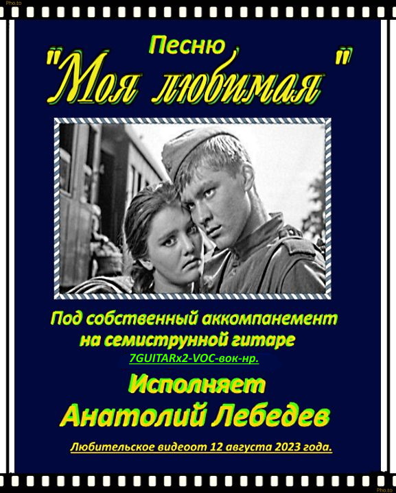 Анатолий Лебедев из Питера. ЛЮБИТЕЛЬСКОЕ ВИДЕО Анатолия Лебедева с его исполнением песни "МОЯ ЛЮБИМАЯ" под собственный аккомпанемент на семиструнной гитаре. Слова написаны в 1941 году Е.Долматовским Музыка написана в 1942 году М.Блантером. Видеозапись исполнения песни сделана А. Лебедевым 5 мая 2020 года. Дополнительный аккомпанемент, работа со звуком и монтаж видеоролика сделаны А. Лебедевым 12 августа 2023 года.