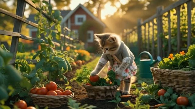 🌼🌿Tiny Kitten’s Peaceful Day at the Farmhouse _ Animation Story 🏡🦋🍅🥕🐾