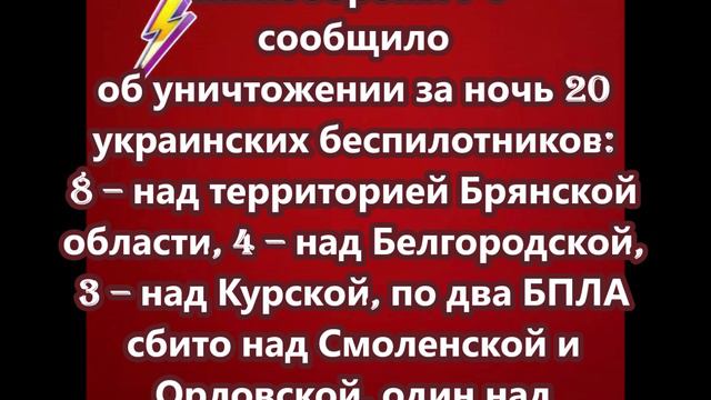 Минобороны РФ сообщило об уничтожении за ночь 20 украинских беспилотников